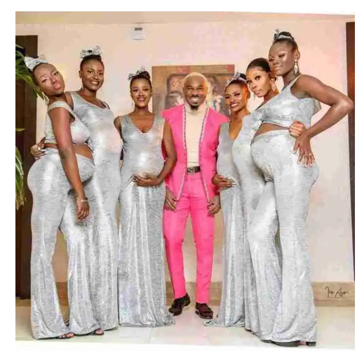 The six pregnant women looked all glammed up in the photos that went viral on social media, where four put on matching long silver dresses, while the other two wore a two-piece silver outfit. Pretty Mike also shared a video where he is seen greeting his baby mamas one by one, as he held their tummies and hands during an entrance.