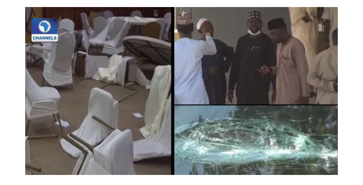 The hoodlums also destroyed chairs, tables and also smashed windscreens of vehicles parked within the premises of the event.
