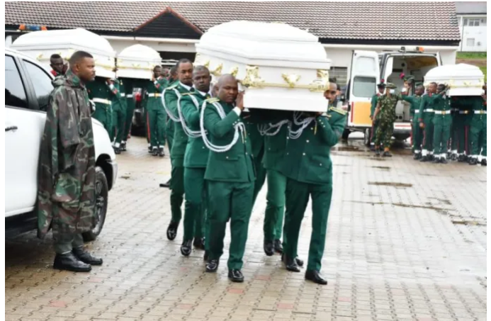 The burial process started with christian wake keep and funeral service held in honour of the fallen heroes at St John’s Military Church (Protestant) before the final Internment at the Guards Brigade Cemetery.