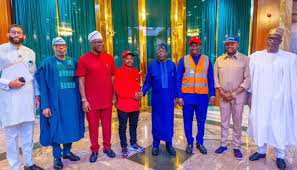 The NLC, TUC, and Other Affiliate Unions Leaders At The Aso Rock Presidenial Villa With Tinubu